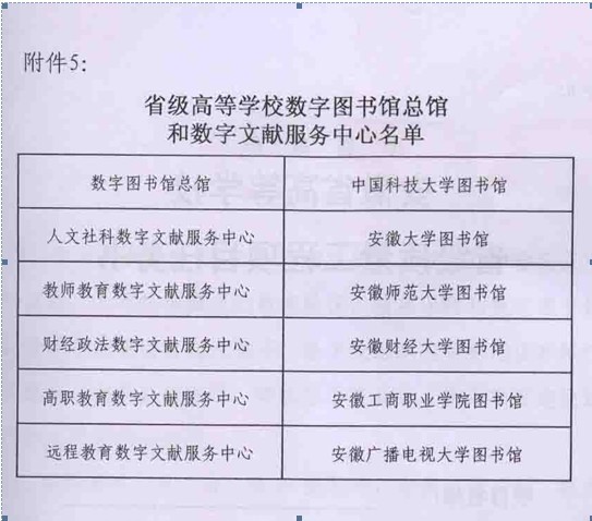 2009年10月12日,在安徽省教育厅、财政厅以教高[2009]9号文公布的2009年高等学校省级教学质量与教学改革工程项目名单中,中国科技大学图书馆图书馆被批准作为“安徽省高等学校数字图书馆”总馆。