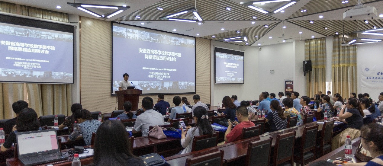 为了进一步落实安徽省省级质量工程项目MOOC示范项目工作,推进网络课程在高校实际教学中的应用,6月28日下午,安徽省高校数字图书馆网络课程应用研讨会在中国科学技术大学西区图书馆三楼报告厅召开。参加会议的有全省本专科及高职高专院校近120位授课教师,省内外部分高校的教务处及图书馆负责人。会议由中国科大图书馆信息咨询部主任郭磊主持。