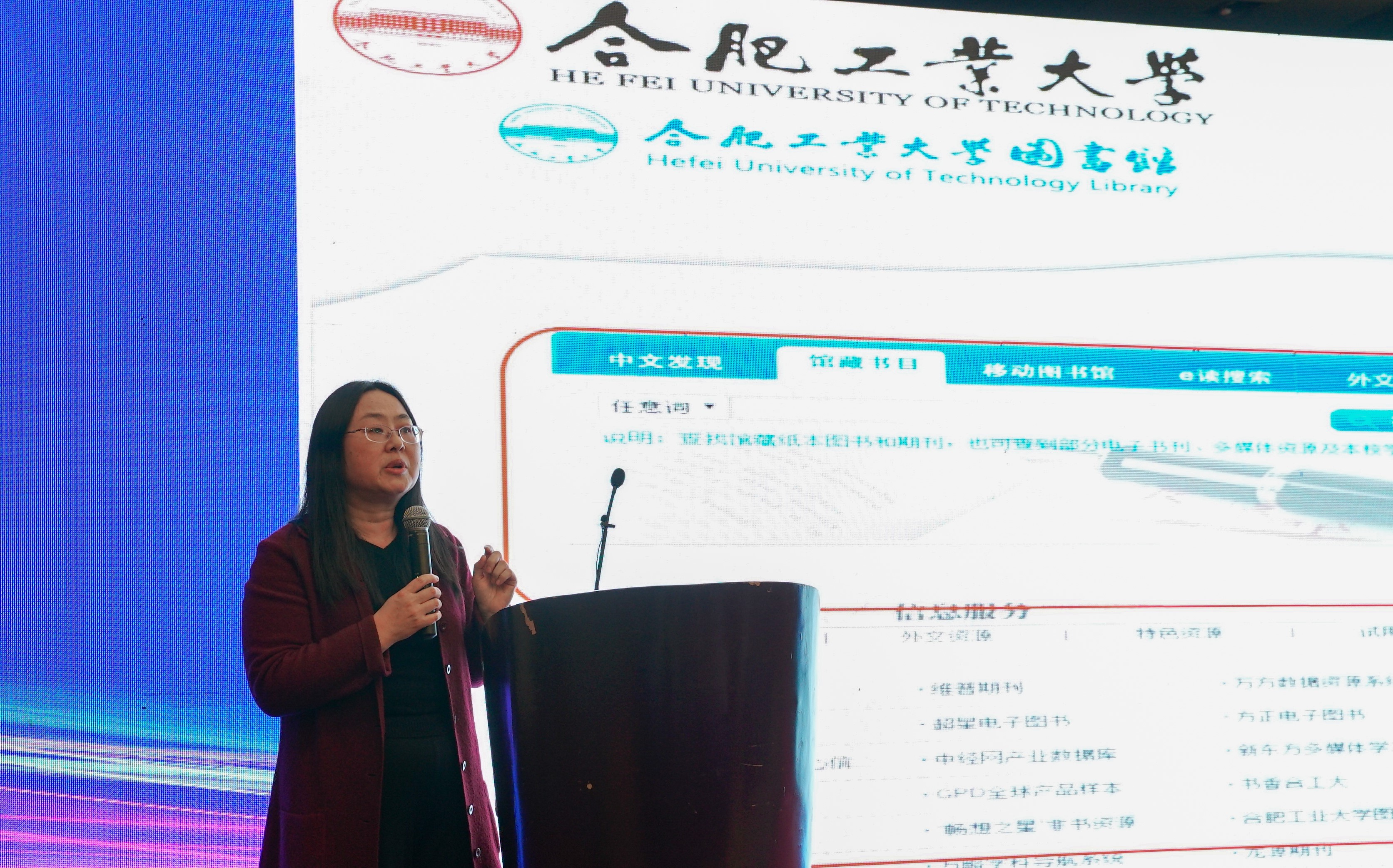 合肥工业大学图书馆李红艳女士结合合肥工业大学图书馆在实际工作中遇到的问题和困境做了“高校图书馆业务管理与服务系统建设新趋势”的报告。李红艳女士对未来合肥工业大学图书馆如何解决业务流程管理、数据揭示和服务系统中存在的信息孤岛现象以及如何更进一步的了解自己的读者提出了他们的看法和思路。