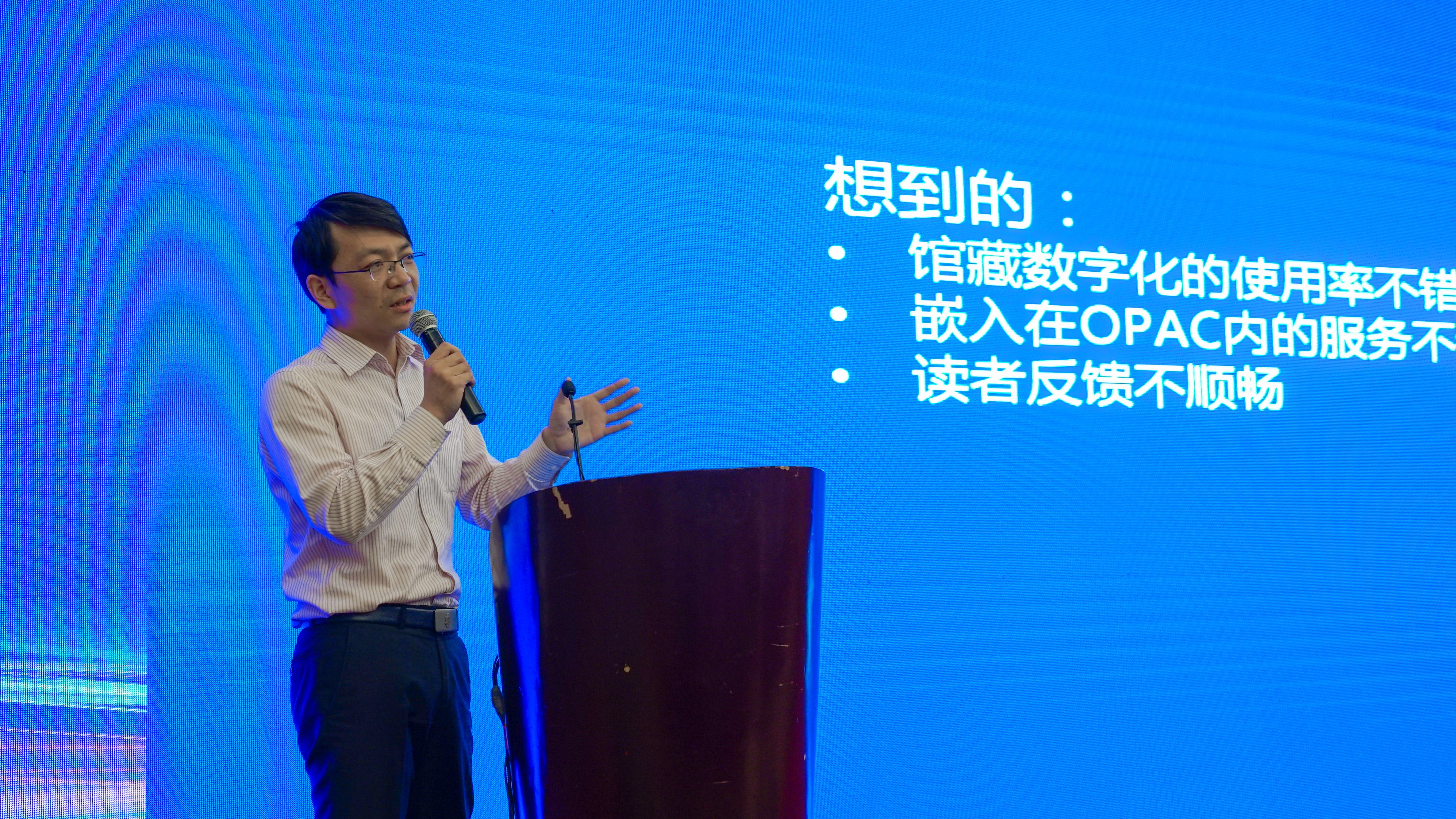 中国科学技术大学图书馆馆长助理郭磊为大家分享了中国科学技术大学在调研下一代图书馆管理系统的过程中结合本馆需求提出的想法。报告中针对下一代图书馆管理系统平台对空间和服务上揭示的不足提出的服务资源化的解决方案得到了诸多高校图书馆同仁的认同。