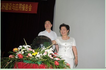 随后,张淑林与李和平共同启动水晶球,正式开通安徽省高校数字图书馆网站。