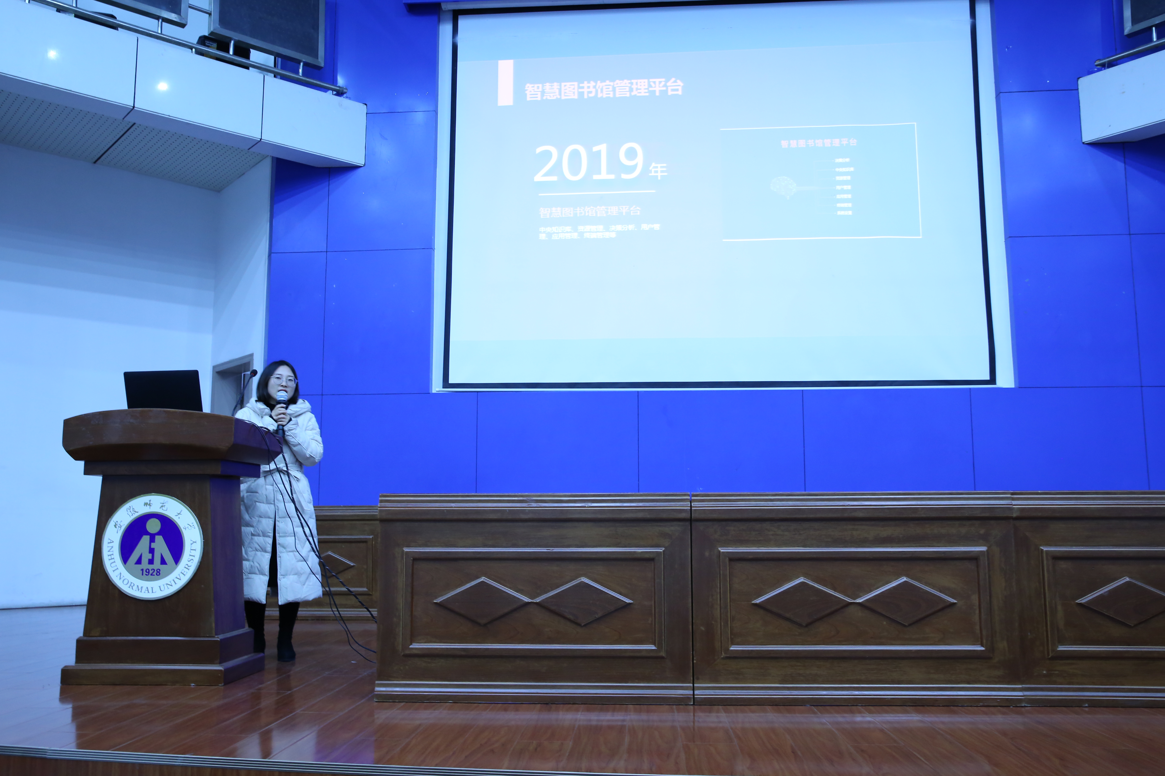首先安徽师范大学图书馆馆长助理章丽作为东道主表示热烈欢迎各位同仁远道而来欢聚一堂,章丽老师分享了安徽师范大学图书馆的建设概述。坚持问题导向,创新知识服务,着重提出要推进图书馆向多样化服务模式相融合的智慧图书馆转型发展,与超星集团合作开发了智慧图书馆微服务平台、电子资源管理、智慧门户、安师大微服务与微应用集群等应用模块,并且将不断深耕合作,助力图书馆的智慧化。