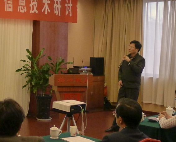 安徽工业大学图书馆馆长许杰星以《加强数字资源服务体系建设,提升信息服务水平》为题, 介绍了数字图书馆的定义及其建设面临的机遇和挑战;探讨了工大图书馆数字资源服务体系建设;最后介绍了信息知识服务的由来,在数字图书馆服务中的体现,以 及泛在知识环境下的图书馆服务,指出本馆信息知识服务尚处于起步和探索阶段需进一步开发建设并提出包括门户系统、统一检索平台、移动图书馆在内的解决方 案。
