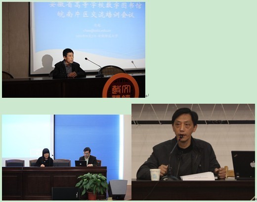 安徽省高等学校数字图书馆(以下简称省数图)于11月7日到11月14日在皖南地区举行了省数图使用平台巡回推介会。此次会议11月7日在安徽师范大学、11月8日在安徽工业大学、11月9日在安庆师范学院、11月14日 在滁州学院分别召开。会议的主要内容是介绍省数图平台使用,并针对省数图文献资源集成与文献传递平台的使用进行培训。中国科技大学图书馆馆长助理、技术部 主任陈超,信息咨询部副主任郭磊,贺礼,樊亚芳,北京世纪超星信息技术发展有限责任公司技术经理邹先发等人参加了此次巡回推介会。会议分别由各高校图书馆 领导或相关负责人主持。